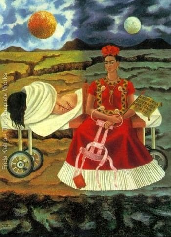 Now recognized as one of the great painters of the 20th century, Frida Kahlo’s life had been one of suffering and pain. Born in Mexico, she had polio at age six, leaving her with a contracted left leg. At the age of 20 she had a serious bus accident that fractured her spinal column, clavicle, ribs, pelvis, and her right leg in 11 places, dislocated her right foot and shoulder, and caused a penetrating injury of her abdomen and uterus. She remained in pain for the rest of her life, underwent as many as 35 operations, and was often confined to bed or hospital for long periods. She had enrolled in medical school, but after her accident spent her life painting. Her works reflect her physical and psychological wounds, as a well as her tempestous marriage to the prominent Mexican painter Diego Riviera.