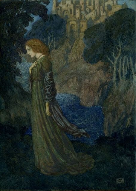 But the aesthetic principle did not stop with a life of beauty. Dying in a prescribed way intensified female attractiveness and even brought about a further purification of loveliness.7 Poe heightened this implication as his Lenore took her undiminished, eternal, and universal feminine qualities to the grave, ones which she has not yet shared with her lover. “Lenore hath gone before…leaving thee wild for the dear child that should have been thy bride…now so lowly lies…life upon her yellow hair, but not within her eyes…life still there upon her hair, the death upon her eyes.”7 Poe also exemplified his aesthetic principle in Annabel Lee. She is beautiful, dies young of consumption, and is spared decay—her appearance unmarred—as she is whisked away by her family and buried out of sight.6