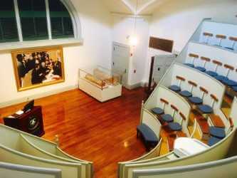 The Ether Dome today is a brightly lit sanctuary at the heart of MGH. From the top of the surgical amphitheater, as it was once generically known, the view is vertiginous. Seats are arranged in steep semicircular rows around the main floor where surgeons of ages past demonstrated their expertise and lecturers today pass on their knowledge to rising generations of physicians. Leaning forward from one of the higher seats, one feels almost at risk of being pulled into a terrifying fall toward the podium below. There are fewer rows today than there were in 1846, spaced slightly farther apart vertically, and the room has been modernized, but its layout has been largely preserved. Imagining the room filled with students and faculty from a bygone age is both easy and thrilling.