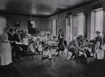 Throughout history, children had been cared for in larger general hospitals. For example, New York City’s Bellevue Hospital listed 126 children in its 1809 census.2 In 1846 Amos Lawrence established in Boston the nation’s first children’s infirmary, and the New York Nursing and Child Hospital opened in 1854; however, both closed after brief existences.3, 1 The first permanent US children’s hospital is thus widely acknowledged to be the Children’s Hospital of Philadelphia (CHOP), founded in 1855 and inspired by Great Ormond Street’s Hospital for Sick Children.4 Other children’s hospitals followed—including Boston Children’s Hospital in 1869—and about two dozen existed by 1900. During this era, pediatrics was typically a division in the department of medicine. At Johns Hopkins, the Harriet Lane Home for Invalid Children opened in 1912, and this full-time department of pediatrics (separate from adult medicine) would become the prototype for modern academic pediatric departments.5