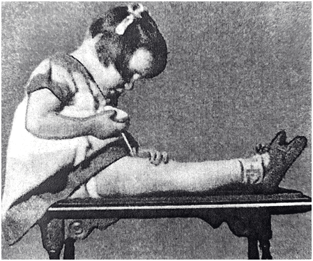 Figure 2. Young girl injecting insulin, Joslin Diabetes Archives