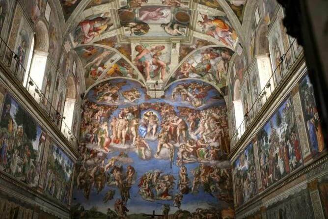 The symbolism of the wooden post or Tree of Life, or Death, may be interpolated as the cross of Jesus in the Christian tradition. The apple, plucked from the Tree, was the fatal and God-forbidden fruit. While the tree in Michelangelo’s fresco portends the death of Adam and Eve, it also looks toward mankind’s future redemption through the wood of the cross. If the viewer stands back from the medley of frescos, the wholeness and consistency of the divine order is evident. (Figure 5)