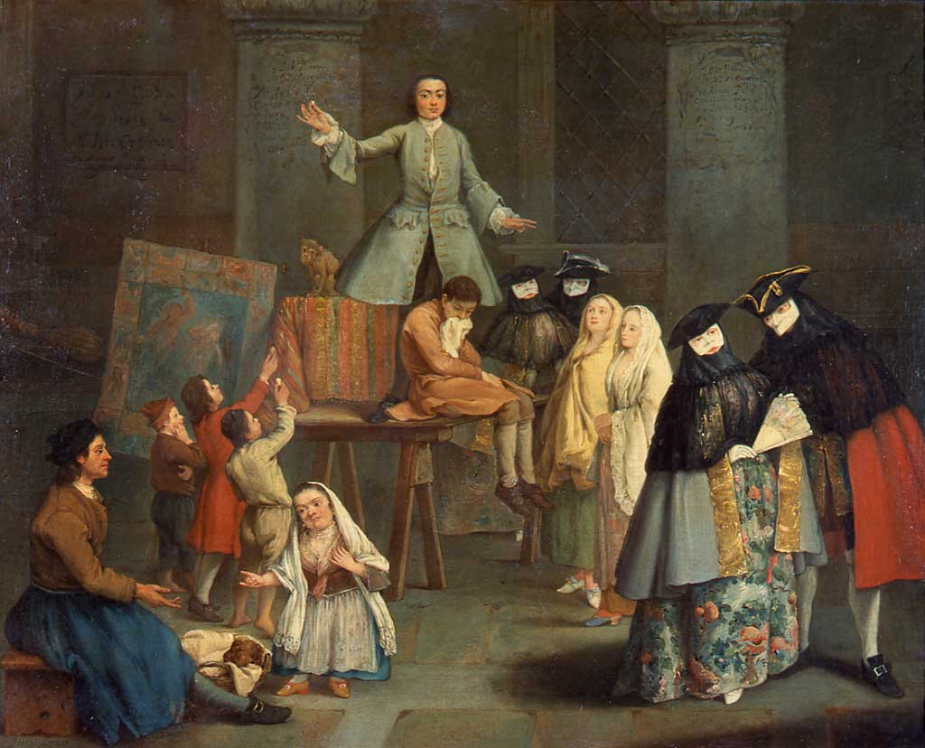Pietro Longhi’s depictions of Venetian society delight the eye by his detailed renderings of elegant satin dresses, demure shoes, and fashionable wigs.