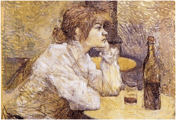 One famous artist provides an early example of art as a means of therapy in the treatment of alcoholism. Henri de Toulouse-Lautrec (1864–1901) was a descendant of old French royalty. Born with a hereditary bone disease, his growth was stunted as a teen from chronic injuries to both legs and he thereafter walked with a limp. Toulouse-Lautrec felt he did not fit in a world that emphasized physical beauty and shunned diversity. He was deeply unhappy because of his condition and societal rejection, and became an alcoholic.