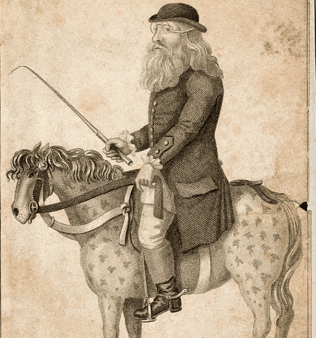 In London in the 1770s, the “dentist” Martin van Butchell mostly sold artificial teeth and gums, and was famous for advertising his services by travelling on a white horse or pony painted with purple spots. His fame (or infamy) continued at home, as he had his wife embalmed and preserved after her death, and then set her up in a glass cabinet in his house’s front window. Reports differ as to whether this was done out of devotion, a desire to attract more business, or a secret clause in their marriage certificate, but it is certain that later when van Butchell remarried, his wife demanded Martin’s “dearly departed” be relocated.