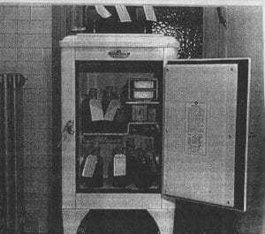 A kerosene-operated refrigerator loaded with blood was fitted into a gray-painted modified Ford station wagon. There was also a sterilizer, gas-operated autoclave, kerosene-operated incubator, water distiller, and bottles to hold blood, amongst other supplies and instruments. The Red Cross had been painted on the rear, and the text on the sides read “Servicio Canadiense de Transfusión de Sangre.”