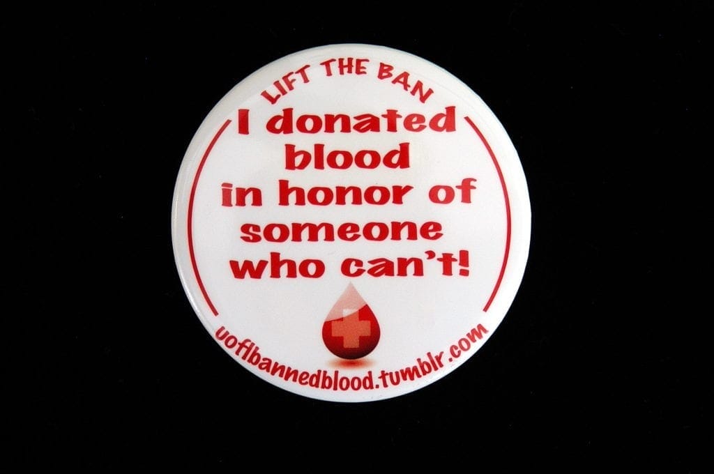 The student lounge at The Intersection was located across the hall from the room where Red Cross blood drives were held. Brian introduced me to Lindsay and Grace, the two students who had received the activism grant. They told me that a few months earlier, during a lull in a blood drive, a well-intended but insufficiently informed blood drive worker walked into the student lounge and asked if anyone wanted to donate blood. The students politely declined, but the blood drive worker persisted. They were so infuriated by this lack of understanding and respect that they did not want another blood drive on campus. After hearing their story, I explained that I could understand their dismay at the way they had been treated. I also explained that the ban from blood donation was from the FDA, not the Red Cross. I then asked if there was any way they could transform the energy of their anger into energy for positive change. Yes, they could. They began the “Banned Blood” project with other students and set up a table outside the door of the Red Barn every time a blood drive was held to raise awareness of the issue (Figure 1). They created a petition to ask the FDA to have the MSM77 policy abolished and encouraged people to go inside to donate blood. Donors were offered a pin that read, “I donated blood in honor of someone who can’t!” (Figure 2). They met with the local CEO of Red Cross Blood Services who apologized for their mistreatment at the Red Barn and offered cooperation from blood drive coordinators to notify them when blood drives were scheduled. This cooperation went on for two years. By the time Lindsay and Grace graduated, they had collected 253 signatures on the petition and sent a cover letter with the petitions to the chairperson of the FDA Blood Products Advisory Council.