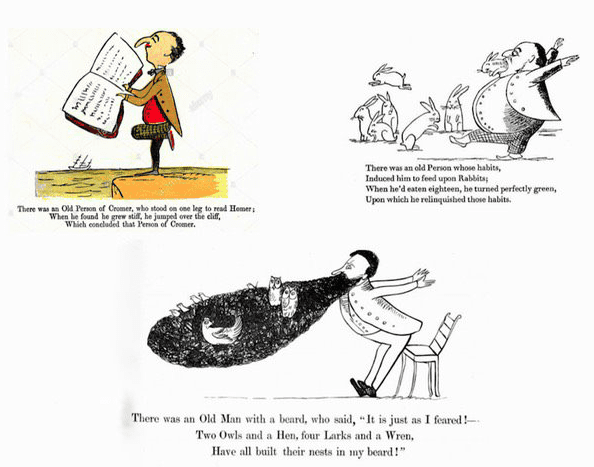 The first known book of limericks was The History of Sixteen Wonderful Old Women published in 1820. Lear’s limericks (often set to song) showed a refreshingly witty style, filled with hilarious absurdities: nonsensical, imaginatively playful pageants of fun, ideal for children—and for not a few adults. The third edition of A Book of Nonsense appeared in 1861. To this day, A Book of Nonsense (Fig 2) has never been out of print. He never used the word “limerick,” a term introduced in the late nineteenth century.iii