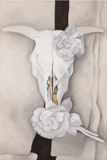 The cow’s skull was found by Georgia O’Keeffe after a drought in New Mexico in the summer of 1930 among many animal skeletons scattered about in the desert. She had the skull sent to New York and later painted it.