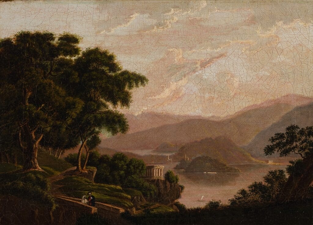 Fig 1. Sophia Amelia Peabody. 1809 Salem, Massachusetts – 1871 London, England. Villa Menaggio, Lago di Como, 1839-40, oil on canvas. Frame (Outer) 13 3/8 x 16 1/2 x 2 1/4 in. (33.97 x 41.91 x 5.72 cm) H x W x D Gift of Joan D. Ensor, in memory of her mother, Imogen Hawthorne, granddaughter of Sophia and Nathaniel Hawthorne, 2004. 138520 © 2007 Peabody Essex Museum, Salem, MA. Photography by Dennis Helmar.