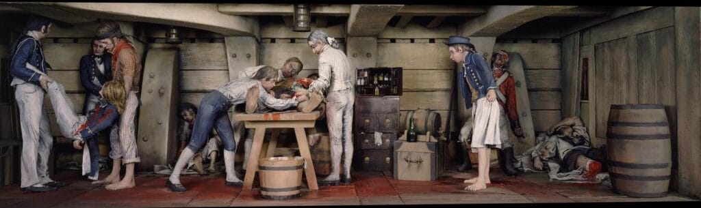 The often awe-inspiring works of art immortalizing historic naval battles usually belie the harsh reality of war. Amidst clouds of billowing, black smoke and the deafening roar of cannon fire, sailors faced the real danger of life-threatening injuries.