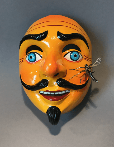 Although malaria remains a major health risk in many parts of the world, indigenous forms of art portraying signs of this disease are rarely encountered. An exception is the Peruvian mask on the left, which, in its yellow color, represents jaundice resulting from malaria. In endemic areas, jaundice may occur in 2.6% to 5.3% of patients with falciparum malaria.1 The mosquito on the cheek of this mask portrays how malaria is transmitted.