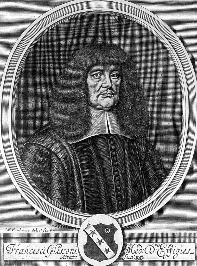 Francis Glisson (1597–1677) was a highly successful physician, so famous in London that in 1668 he was consulted along with Ashley Cooper and Thomas Sydenham to advise whether the future Earl of Shaftesbury should undergo surgery to drain a perihepatic abscess. In 1650, he published a comprehensive account of infantile rickets (“Glisson’s disease”). Four years later, in his famous 1654 masterpiece Anatomia hepatitis, he provided the initial description of the capsule that envelops the liver, based on his studies of the ox liver.