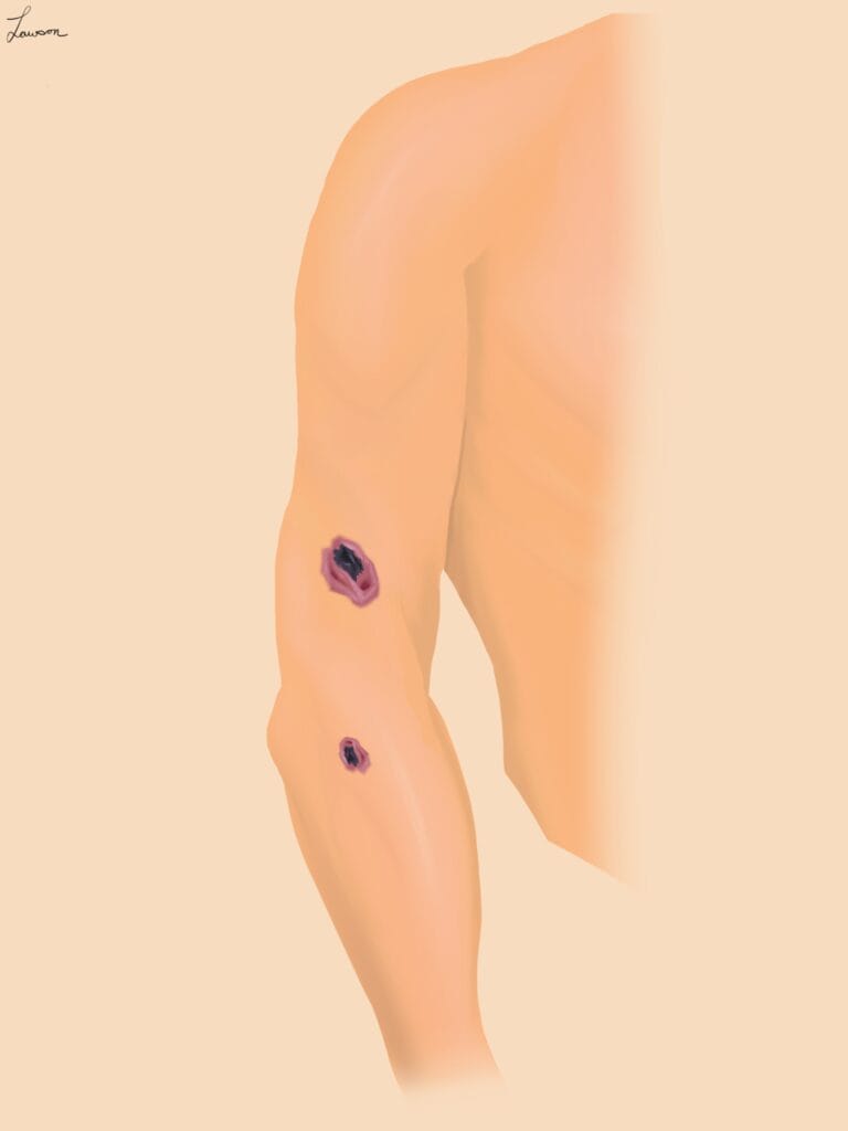 Virgil’s description is highly consistent with cutaneous anthrax. The majority of human cases of cutaneous anthrax are caused by exposure to contaminated animal hides or animal products, usually in an agricultural setting.2 Over 90% of cases worldwide today are cutaneous, and most often occur on the head, forearms, or hands. Cutaneous lesions are papular, often with depressed necrotic eschars in their center, surrounded by erythematous, edematous tissue.3 While the disease is currently rare in the developed world, it was endemic throughout the Mediterranean during Virgil’s day; it appears that a large outbreak several centuries before his birth may have killed as much as half the animal population of Rome.4 Anthrax seems to have increased from the expansion and trade networks of the Roman Empire, as later outbreaks followed the path of Rome’s spreading influence.4