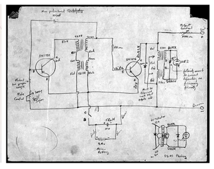 Bakken designed a circuit that was modified from a transistorized metronome he had seen in an issue of Popular Electronics magazine.3,4 The metronome circuit transmitted clicks through a loudspeaker, and the rate could be adjusted to fit the music using a block transistor oscillator circuit. Bakken’s design eliminated the loudspeaker and was powered by a 9.4-volt mercury battery housed in a 4 x 4 x 0.5-inch aluminum box with external terminals and switches. Transistors were unique because they either blocked current or allowed it to pass. This made them useful for pacemakers, which utilize periodic doses of electrical current to stimulate heart tissue and pace the heart, rather than provide a continuous flow of current. Transistors also allowed the device to be portable and efficient enough to run on batteries. The pacemaker had control knobs for heart rate, stimulus, and amplitude. It was tested in an animal lab and used successfully the next day in a child. In 1958, Model 5800 was updated with pediatric-specific modifications and metal handles so it could be worn.