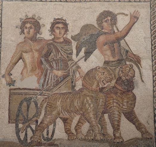 Sistine Chapel ceiling by Michaelangelo. Crop and darkening of photo by Amandajm on Wikimedia (https://commons.wikimedia.org/wiki/File:CAPPELLA_SISTINA_Ceiling.jpg). CC BY 3.0 (https://creativecommons.org/licenses/by-sa/3.0/deed.en).